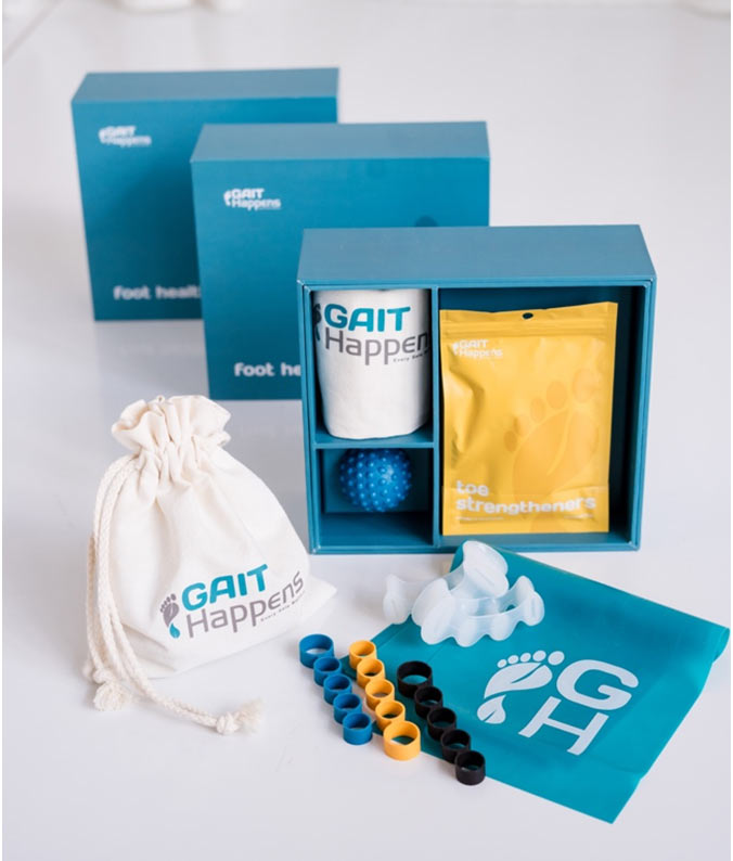 We’re often asked, where did we get the idea to combine orthotics with Gait Happens’ Foot Health Kit? We know that foot orthotics help achieve a better foot posture, and strengthening exercises help feet function better. We would like to introduce the concept of adding an exercise program with the utilization of foot orthotics to not only assist in pain reduction but ultimately improve foot function. We find that offering both solutions in combination can yield better results than either in isolation. Sowe’ve partnered together to combine these powerful interventions.